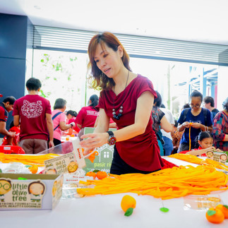 The excitement continued beyond the stage. Our Art Booth was buzzing with activity throughout the event, as our dedicated staff guided families in creating adorable mandarin oranges using orange netting and pipe cleaners. Simple yet engaging, the hands-on activity drew smiles from both young and old, reinforcing the spirit of togetherness that defines the festive season.